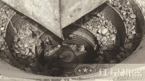 鵝卵石破碎現(xiàn)場,圓錐破碎機特別適合用來破碎卵石